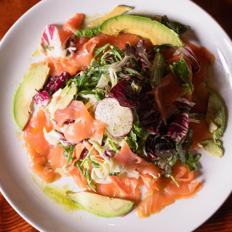 Local honey herb yogurt dressing, carrot, citrus pickled fennel, sliced avocado.