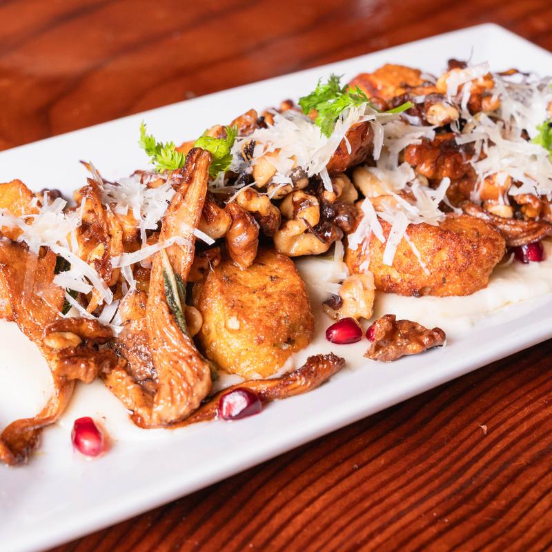 Parmesan meyer lemon fonduta, toasted walnuts, fried sage.