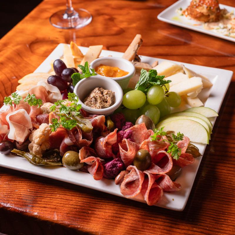 House made pickles, accoutrements, apricot preserves, mustard.